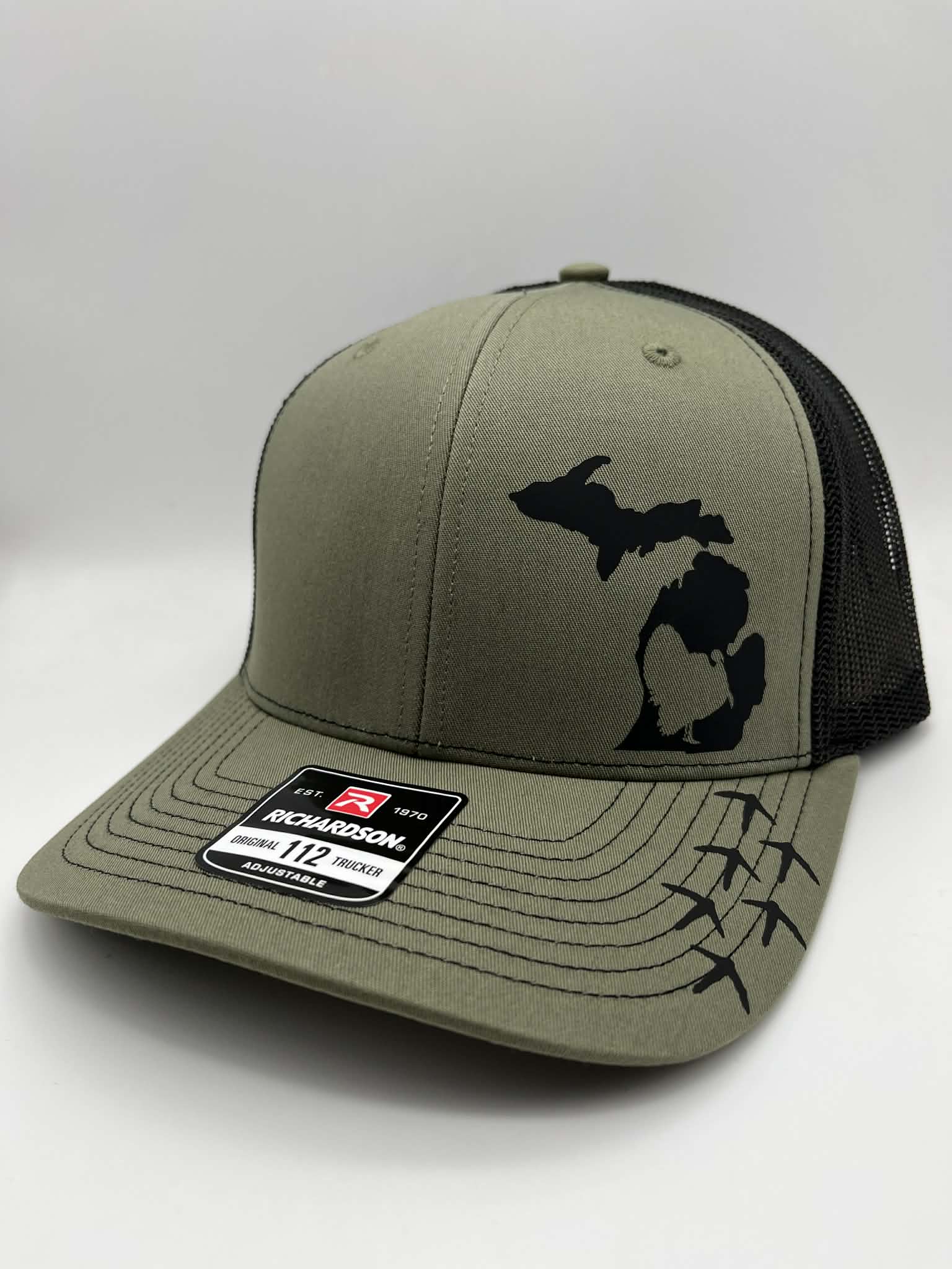Flexfit 110 or Richardson 112 SnapBack Adjustable Hat with turkey cut out of state and turkey tracks on bill